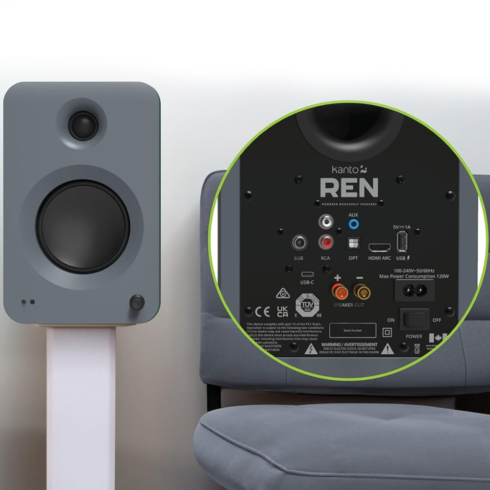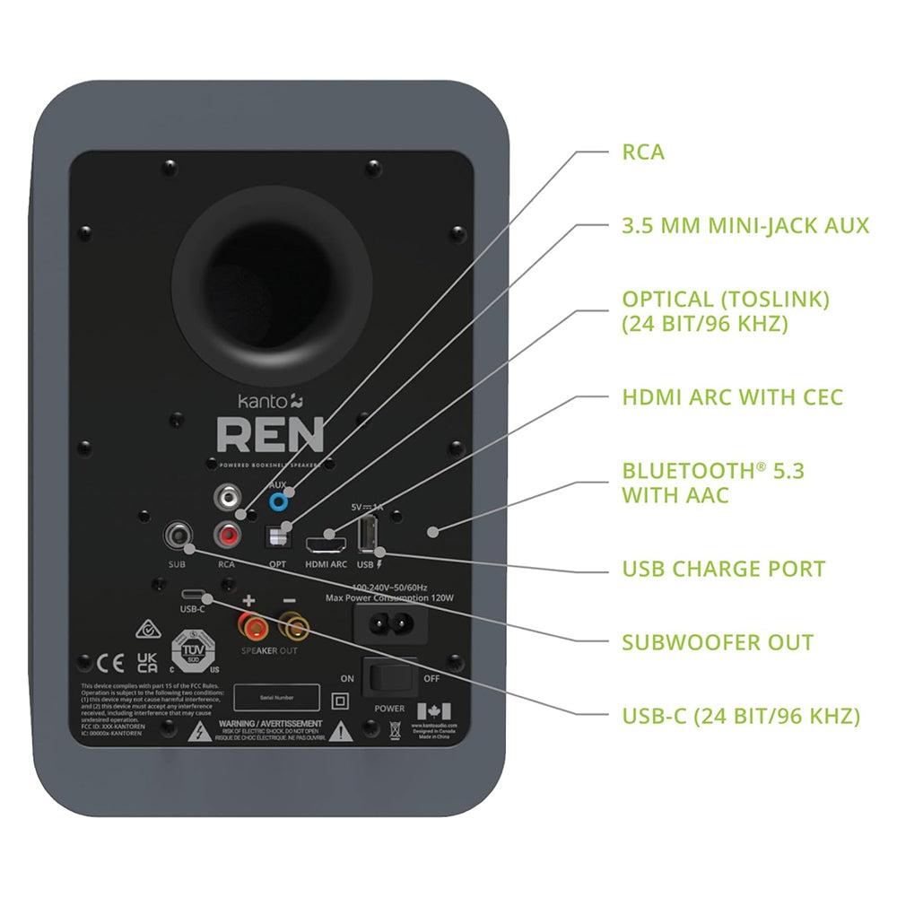 Kanto REN поєднує зручність використання саундбара та точність стереосистеми, керованої DSP, REN, забезпечуючи високоякісне звучання з будь-яким сучасним телевізором через HDMI ARC. Це дає вам можливість створити кінозал вдома в одному компактному пакеті. REN вирішує проблему тихих діалогів і надмірно гучних звукових ефектів завдяки двом режимам звуку, що підсилюють голоси та знижують низькі частоти для зручного перегляду вночі. Коли ви захочете підключити сабвуфер, REN автоматично фільтрує суб-бас зі своїх 5,25-дюймових алюмінієвих динаміків, даючи їм можливість фокусуватися на середніх частотах з мінімальними спотвореннями. REN пропонує універсальність за межами вітальні: Bluetooth 5.3 для підключення до смарт-пристроїв, оптичний вхід для потокових сервісів Wi-Fi, USB-C для використання на комп'ютері та аналогові входи для всього іншого.