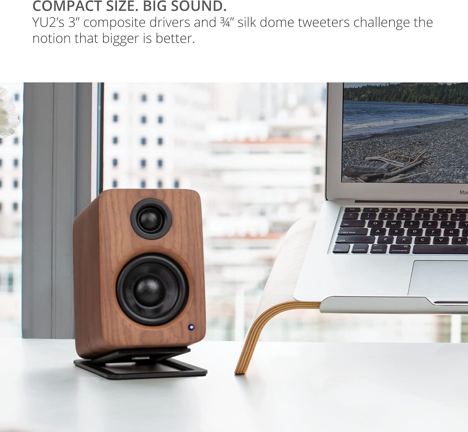Настільний міні-монітор YU2 змусить вас повірити, що великий звук може бути у маленькому корпусі. Завдяки вбудованій звуковій карті він може транслювати високоякісний звук безпосередньо з USB-порту комп'ютера або підключатися безпосередньо до будь-якого 3,5-мм роз'єму AUX для максимальної гнучкості. 3-дюймові композитні драйвери забезпечують відтворення басів та середніх частот без спотворень, а 3/4-дюймові твітери з шовковим куполом відтворюють чисті високі частоти. Спеціально налаштований фазоінвертор задньої панелі розширює діапазон низьких частот. Якщо вам подобаються глибокі баси, просто підключіть сабвуфер до порту SUB OUT та насолоджуйтесь чистим блаженством низьких частот.