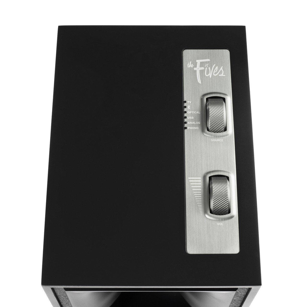 Klipsch The Fives — двосмугова система з компресійним драйвером і рупором Tractrix для високих частот та 13 см СЧ-НЧ-динаміком. Всі електронні компоненти розміщені в одній колонці, а на другу передається посилений сигнал. Підключення через Bluetooth, HDMI ARC, USB і інші порти. Вони підтримують відтворення сигналів до 24 біт/192 кГц і мають вбудований DSP. Відсутня підтримка віртуального об’ємного звучання.