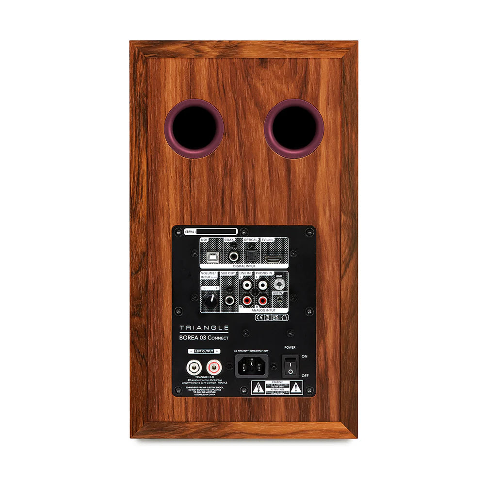 Triangle Borea BR03 Connect — активні стереоколонки, що поєднують класичне звучання TRIANGLE із сучасними технологіями для домашнього використання. Вони ідеально підходять для приміщень площею від 15 до 35 м² і дозволяють насолоджуватися музикою з різних джерел: вінілові програвачі через вбудований MM-фонокоректор, бездротове відтворення через Bluetooth із підтримкою aptX HD, цифрове підключення до ПК через USB-B (384 кГц / 32 біт, DSD 256), а також коаксіальні, оптичні та RCA-входи. HDMI ARC забезпечує інтеграцію з телевізором і керування гучністю одним пультом, а вихід на сабвуфер дозволяє розширити акустичну систему.