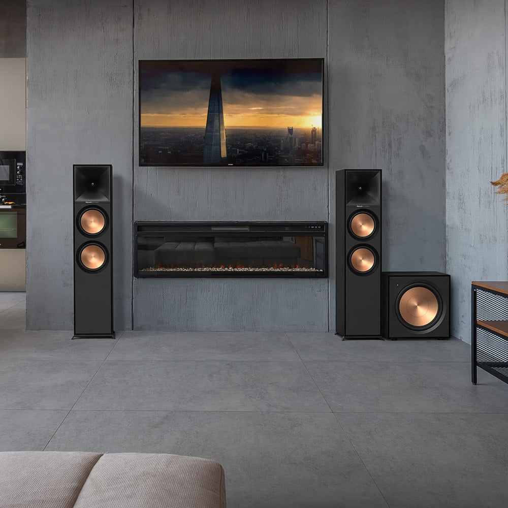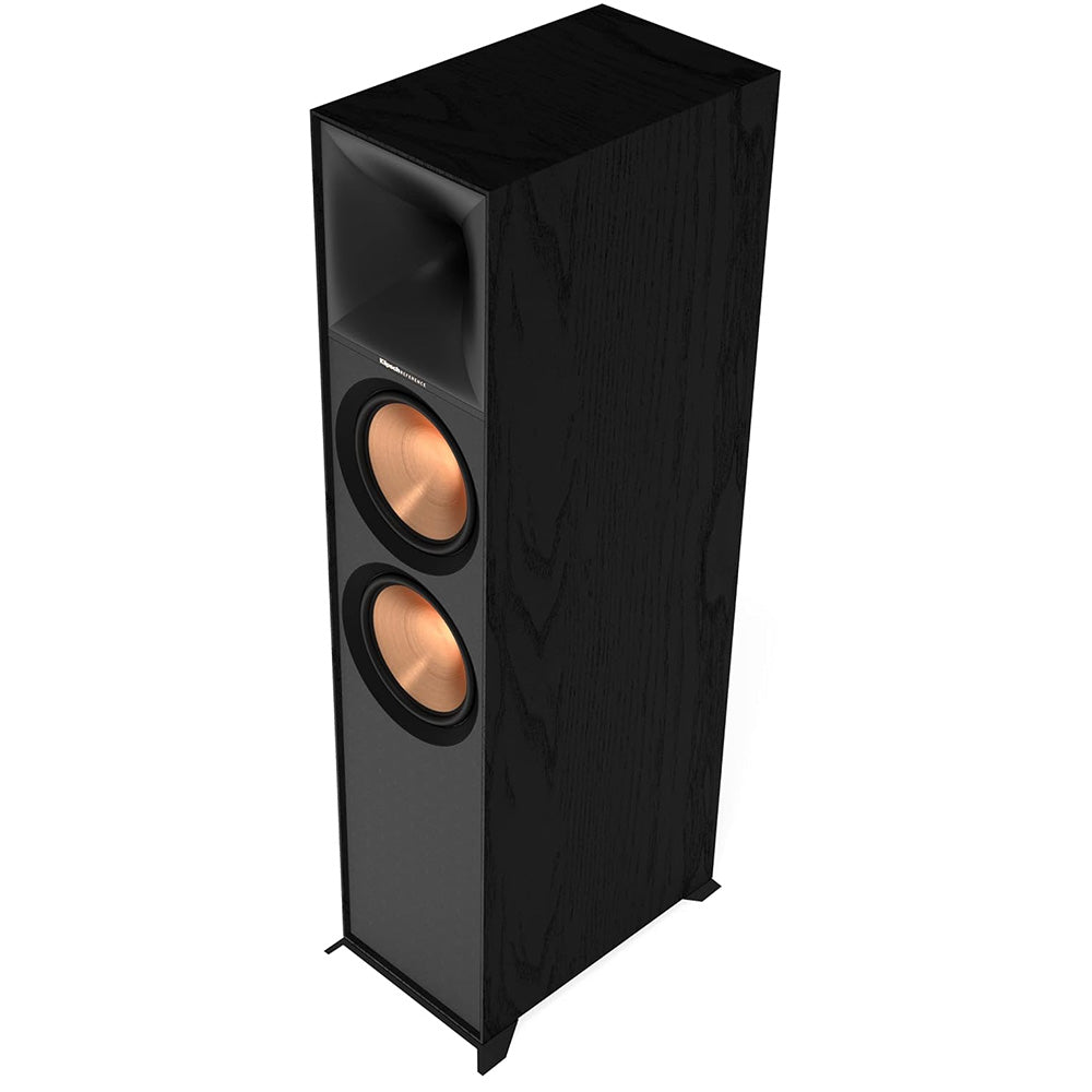 Підлогові акустичні системи Klipsch R-800F — це старша модель серії, яка забезпечує потужне звучання навіть у великих приміщеннях, зручна для розміщення в інтер'єрі. Корпус має чорну вінілову плівку під дерево, що не відблискує та стійка до пошкоджень. Підлогові опори забезпечують стабільність колонок.