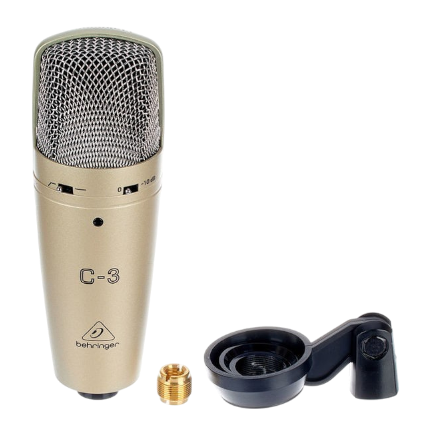 Модель оснащена металевим корпусом і XLR-роз’ємом позолоченого типу для надійного підключення до аудіоінтерфейсу або мікшерного пульта. У комплекті йде тримач для мікрофонної стійки та кейс для зберігання і транспортування. Behringer C-3 підходить для домашніх і напівпрофесійних студій, а також для використання на живих виступах.