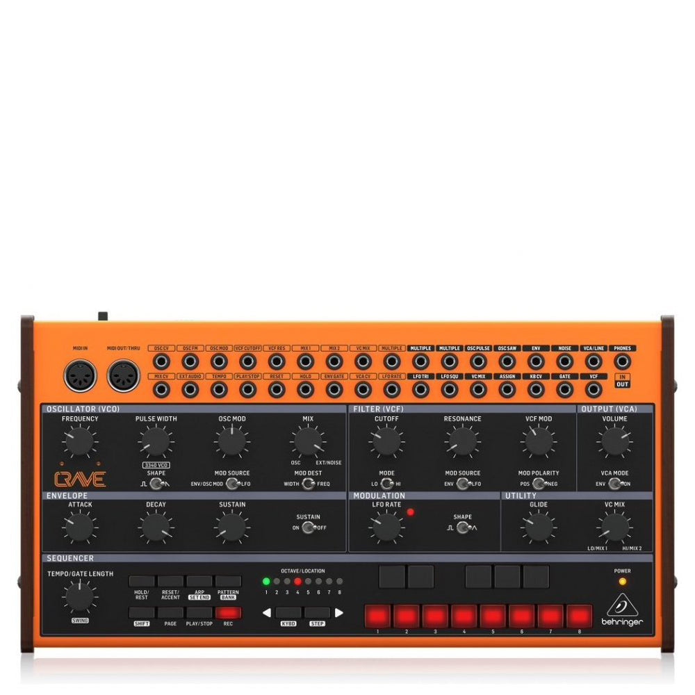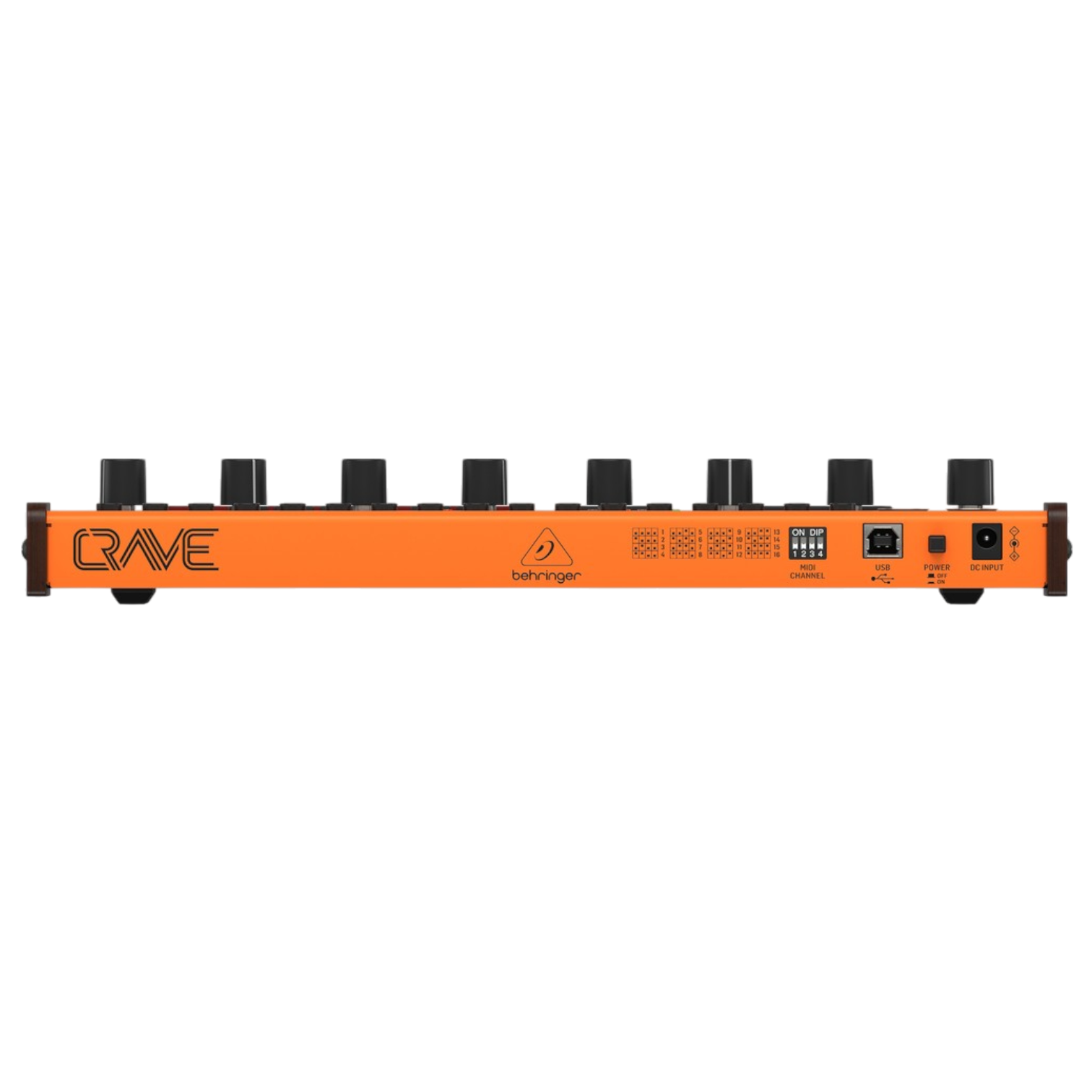 Behringer Crave — доступний і повністю аналоговий напівмодульний синтезатор, що поєднує один з кращих аналогових осциляторів 3340, такий же, як у Sequential Prophet 5 та Neutron, з класичним фільтром Moog Ladder на 24 дБ. Синтезатор оснащений одним генератором огинаючої з регулюванням Attack, Decay і Sustain, при цьому Sustain можна відключати тумблером. Пристрій має потужний 32-кроковий секвенсор із можливістю збереження до 8 доріжок, де на кожному кроці можна регулювати glide time, gate length, accent та ratchet. Для створення акордових патернів доступний вбудований арпеджіатор.