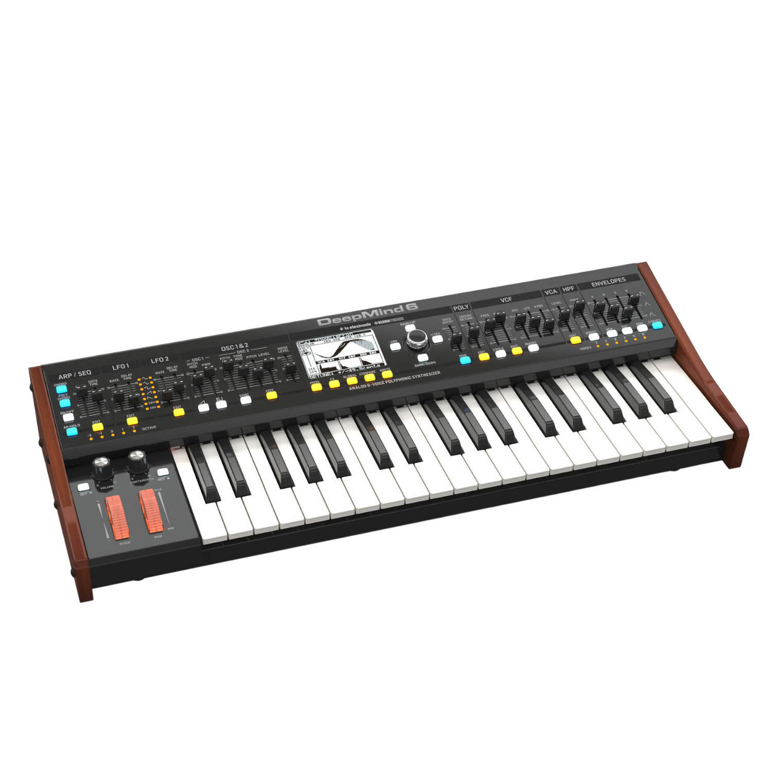 Behringer DeepMind 6 — аналоговий поліфонічний синтезатор, 6-голосна версія DeepMind, яка має всі функції старшої моделі, крім вбудованого Wi-Fi. Кожен із шести голосів оснащений двома осциляторами з цифровим керуванням. Клавіатура складається з 37 напівзважених клавіш з післядією та чутливістю до натискання. Пристрій підтримує до 1024 пресетів у 8 банках та оснащений 32-кроковим секвенсором і арпеджіатором для створення складних музичних патернів.
