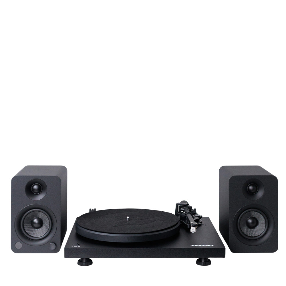Програвач вінілу Crosley C6 у поєднанні з активною акустикою Kanto YU4 утворює готову систему для відтворення вінілових платівок із сучасним звучанням.