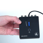 У версії Nano Phono Headphone V2 також передбачено вбудований підсилювач для навушників із регулюванням гучності, що дозволяє комфортно слухати музику безпосередньо. Позолочені RCA-роз'єми гарантують стабільний контакт, а зовнішнє джерело живлення знижує рівень шумів, забезпечуючи чистий і деталізований звук.