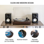 Його елегантний дизайн поєднується з якісним звуком, а кожна деталь створена для максимального комфорту та точності. Ремінний привід, антивібраційні ніжки та високоякісний картридж Audio-Technica забезпечують чисте відтворення без зайвих шумів — лише ваша улюблена музика.