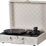 Представляємо Crosley Cruiser Deluxe ! Цей програвач, як і раніше, має чарівний корпус у вигляді валізи, але тепер ви можете налаштовувати швидкість запису за допомогою розширених налаштувань управління висотою звуку або легко синхронізуватися зі з'єднанням Bluetooth і транслювати цифрову музику прямо через вбудовані динаміки. Влаштовуйте джеми один на один з роз'ємом для навушників або під'єднуйте динаміки через порти RCA, щоб звучати голосно. Виберіть з веселки звуків, щоб почати свою пригоду з вінілом з цим портативним трьохшвидкісним програвачем.