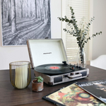 Представляємо Crosley Cruiser Deluxe ! Цей програвач, як і раніше, має чарівний корпус у вигляді валізи, але тепер ви можете налаштовувати швидкість запису за допомогою розширених налаштувань управління висотою звуку або легко синхронізуватися зі з'єднанням Bluetooth і транслювати цифрову музику прямо через вбудовані динаміки. Влаштовуйте джеми один на один з роз'ємом для навушників або під'єднуйте динаміки через порти RCA, щоб звучати голосно. Виберіть з веселки звуків, щоб почати свою пригоду з вінілом з цим портативним трьохшвидкісним програвачем.