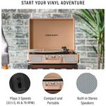 Представляємо Crosley Cruiser Deluxe ! Цей програвач, як і раніше, має чарівний корпус у вигляді валізи, але тепер ви можете налаштовувати швидкість запису за допомогою розширених налаштувань управління висотою звуку або легко синхронізуватися зі з'єднанням Bluetooth і транслювати цифрову музику прямо через вбудовані динаміки. Влаштовуйте джеми один на один з роз'ємом для навушників або під'єднуйте динаміки через порти RCA, щоб звучати голосно. Виберіть з веселки звуків, щоб почати свою пригоду з вінілом з цим портативним трьохшвидкісним програвачем.
