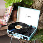 Представляємо Crosley Cruiser Deluxe ! Цей програвач, як і раніше, має чарівний корпус у вигляді валізи, але тепер ви можете налаштовувати швидкість запису за допомогою розширених налаштувань управління висотою звуку або легко синхронізуватися зі з'єднанням Bluetooth і транслювати цифрову музику прямо через вбудовані динаміки. Влаштовуйте джеми один на один з роз'ємом для навушників або під'єднуйте динаміки через порти RCA, щоб звучати голосно. Виберіть з веселки звуків, щоб почати свою пригоду з вінілом з цим портативним трьохшвидкісним програвачем.
