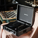 Представляємо Crosley Cruiser Deluxe ! Цей програвач, як і раніше, має чарівний корпус у вигляді валізи, але тепер ви можете налаштовувати швидкість запису за допомогою розширених налаштувань управління висотою звуку або легко синхронізуватися зі з'єднанням Bluetooth і транслювати цифрову музику прямо через вбудовані динаміки. Влаштовуйте джеми один на один з роз'ємом для навушників або під'єднуйте динаміки через порти RCA, щоб звучати голосно. Виберіть з веселки звуків, щоб почати свою пригоду з вінілом з цим портативним трьохшвидкісним програвачем.