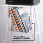 Завдяки міцній дерев’яній конструкції та елегантній обробці, ця тумба ідеально підійде як для вінілового куточка, так і для вітальні. Верхня частина зручно вміщує більшість моделей програвачів, а нижній відкритий відсік розрахований на зберігання до 100 платівок — зручно, організовано й завжди під рукою.