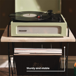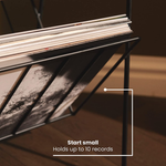 Коли ви лише починаєте колекціонувати вінілові платівки, вам не обов’язково одразу мати велику шафу на сотні платівок. Ідеальним стартом стане компактна та стильна меблева одиниця — столик Wiltshire. Його витончений чорний металевий каркас додає легкості та сучасного вигляду, а мінімалістичний дизайн легко впишеться в будь-який інтер’єр.Передня полиця вміщує близько 10 платівок — саме стільки, скільки потрібно на початку. Верхня частина виготовлена з натурального дерева манго, яке забезпечує надійну основу для вашого програвача. Wiltshire — це практичне та стильне рішення для тих, хто лише відкриває для себе світ вінілу.