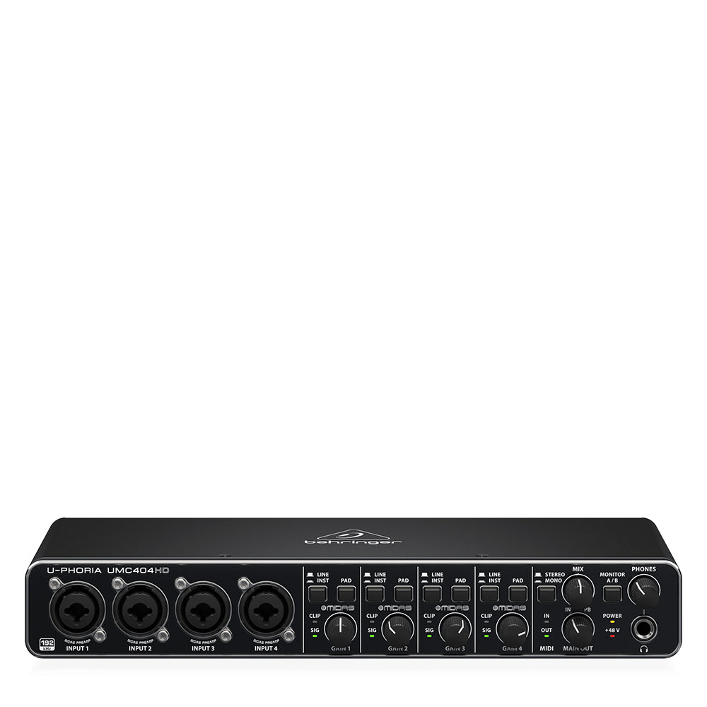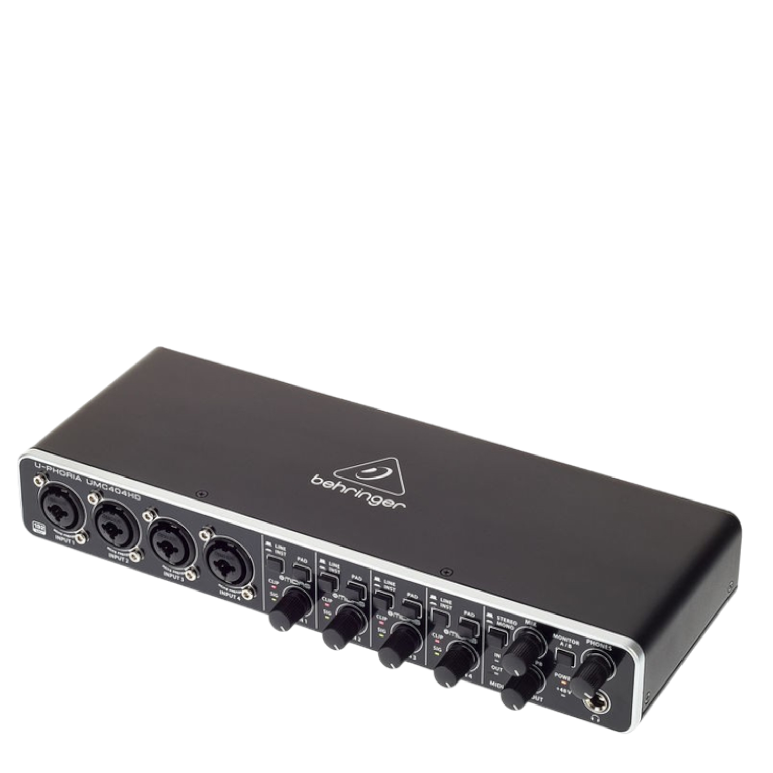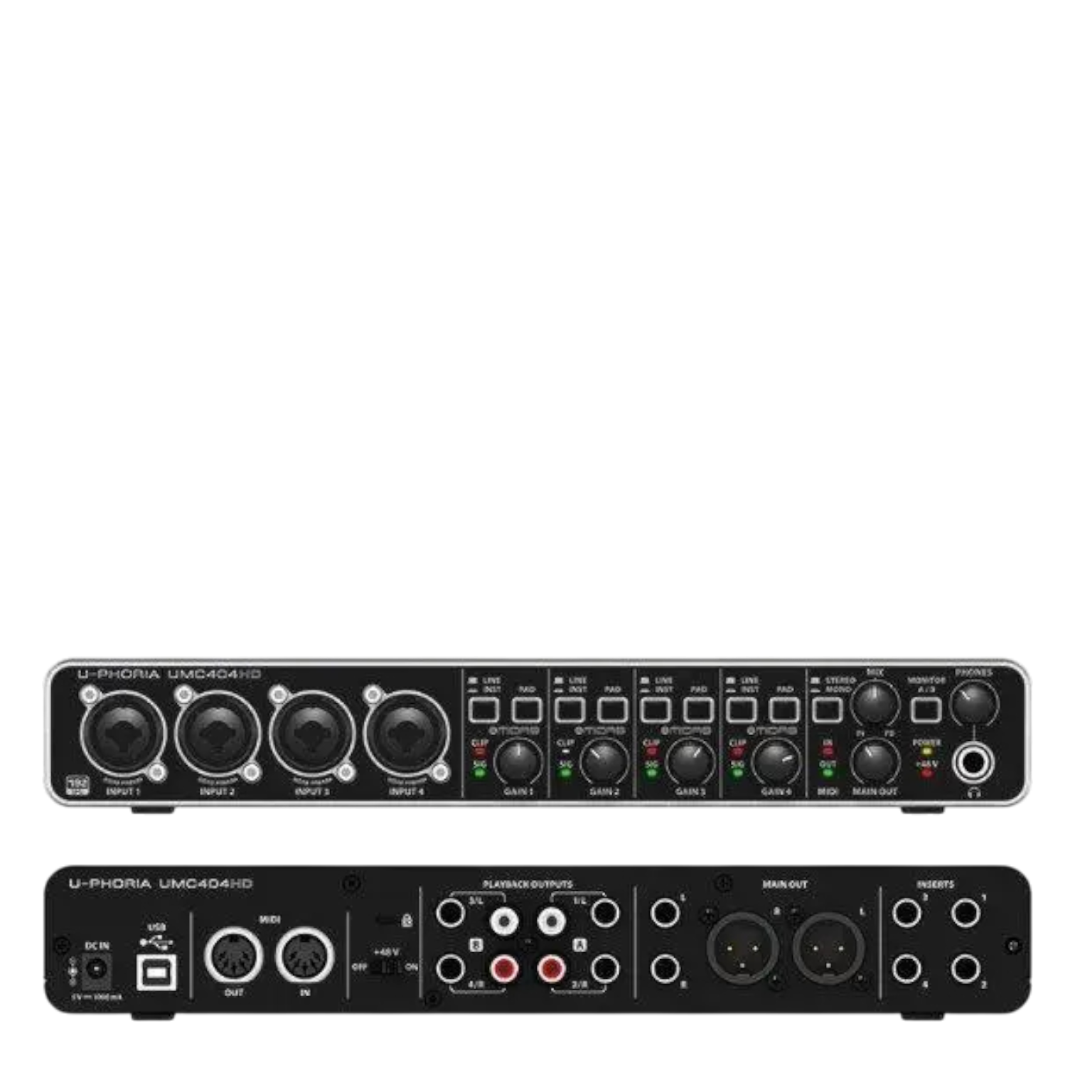 Behringer UMC404HD — це професійний USB-аудіоінтерфейс 4x4, розроблений для високоякісного запису та відтворення звуку. Він оснащений чотирма комбінованими входами XLR/TRS з фантомним живленням +48 В, що дозволяє підключати мікрофони, інструменти та лінійні джерела сигналу.