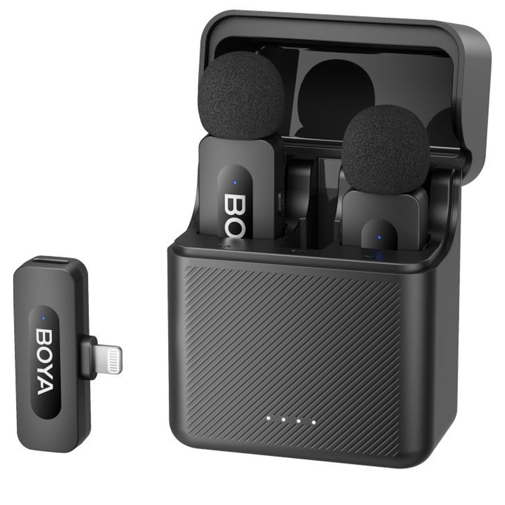 BOYA BY-V3 Lightning — компактна бездротова мікрофонна система, спеціально розроблена для професійного запису звуку на пристрої Apple. Система працює на цифровій частоті 2.4 ГГц, забезпечуючи стабільну передачу сигналу на відстані до 100 метрів. Головною особливістю версії V3 є наявність зарядного кейса, який значно подовжує час автономної роботи та спрощує транспортування.