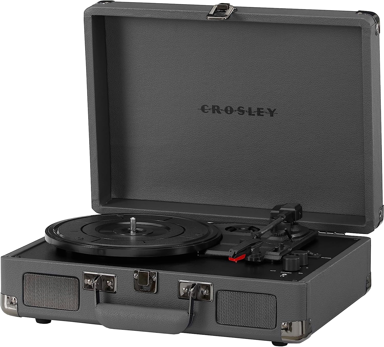Представляємо Crosley Cruiser Deluxe ! Цей програвач, як і раніше, має чарівний корпус у вигляді валізи, але тепер ви можете налаштовувати швидкість запису за допомогою розширених налаштувань управління висотою звуку або легко синхронізуватися зі з'єднанням Bluetooth і транслювати цифрову музику прямо через вбудовані динаміки. Влаштовуйте джеми один на один з роз'ємом для навушників або під'єднуйте динаміки через порти RCA, щоб звучати голосно. Виберіть з веселки звуків, щоб почати свою пригоду з вінілом з цим портативним трьохшвидкісним програвачем.