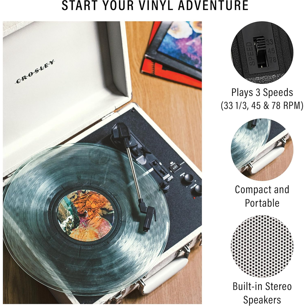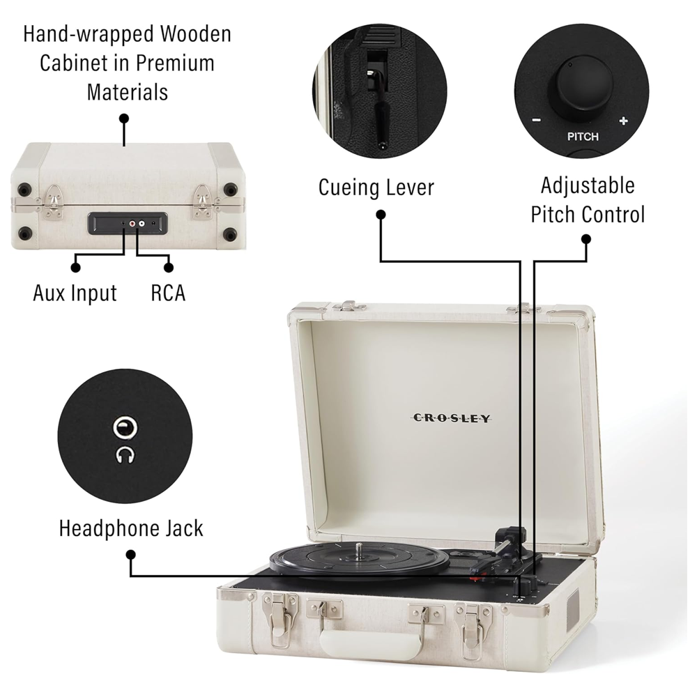 Представляємо Crosley Cruiser Deluxe ! Цей програвач, як і раніше, має чарівний корпус у вигляді валізи, але тепер ви можете налаштовувати швидкість запису за допомогою розширених налаштувань управління висотою звуку або легко синхронізуватися зі з'єднанням Bluetooth і транслювати цифрову музику прямо через вбудовані динаміки. Влаштовуйте джеми один на один з роз'ємом для навушників або під'єднуйте динаміки через порти RCA, щоб звучати голосно. Виберіть з веселки звуків, щоб почати свою пригоду з вінілом з цим портативним трьохшвидкісним програвачем.
