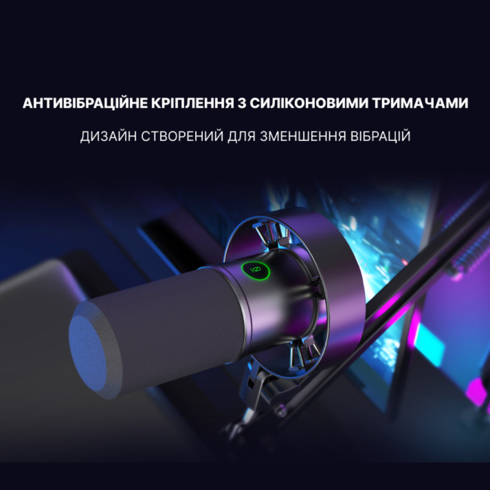 Комплектація: 1 X Мікрофон з антивібраційним кріпленням; 1 X Поворотне кріплення з гвинтовим кріпленням; 1 X USB-C - USB; 1 X Посібник користувача