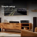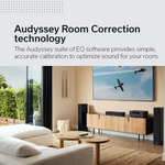 Кожен домашній кінотеатр індивідуальний - ось чому Denon використовує преміальну технологію калібрування акустичної системи та корекції приміщення Audyssey MultEQ, яка автоматично вимірює й оптимізує параметри акустичної системи та корекцію акустичних властивостей приміщення, щоб забезпечити справді захопливий об'ємний звук, налаштований саме для вашої кімнати.
