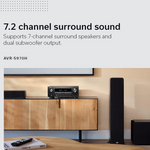 AVR-S970H - це захоплюючий об'ємний звук і неймовірне відео 8K. Він зроблений для того, щоб наповнювати кімнати середнього розміру вишуканим звучанням у складі систем 7.2 або 5.2.2 і Dolby Atmos / DTS:X. Завдяки вбудованій системі HEOS® ви можете передавати музику в потоковому режимі бездротовою мережею і транслювати її на колонки з підтримкою HEOS в інших кімнатах.