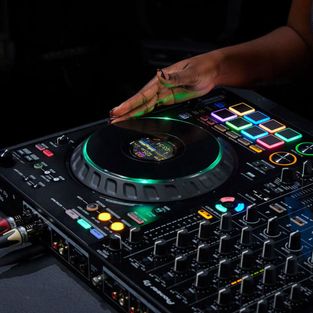 Дисплеї під час пробіжки були розширені, щоб ви завжди мали огляд . Тепер ви можете вибрати один із 4 режимів: Deck Info Mode, Waveform Mode, Artwor Display і DJ Logo. Звичайно, великі 170-міліметрові бігові колеса пропонують точний контроль і точне регулювання положення треку, як ви звикли від Pioneer DJ. За допомогою контролера Feeling-Adjust бігові колеса можна адаптувати до особистих потреб.