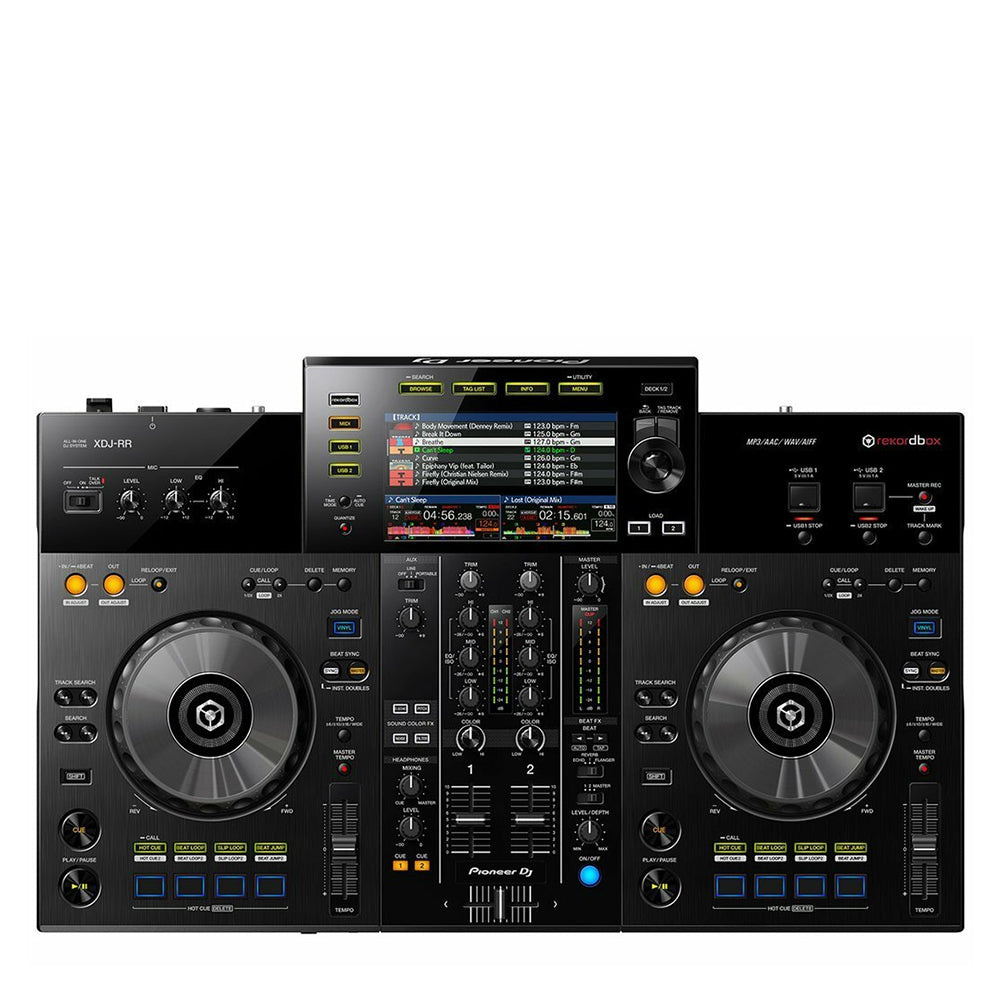 Pioneer XDJ-RR - 2-х канальна діджейська система "все-в-одному". Система успадкувала дизайн і основні характеристики флагмана Pioneer NXS2 і мікшера, які скомбіновані в одну легку і компактну установку. Маючи під рукою все що потрібно для створення унікальних міксів, ви зможете відразу ж наповнити музикою танцзал. XDJ-RR дає змогу вибрати спосіб відтворення. Можна під'єднати USB флешку й одразу відтворювати треки або використовувати режим Link Export, щоб отримати доступ до всієї бібліотеки rekordbox через ноутбук без експорту музики на флешку. Або ви можете під'єднатися до комп'ютера за допомогою USB-кабелю і використовувати широкі можливості режиму Performance в Rekordbox. Контролер оснащений 7-ми дюймовим кольоровим екраном, на якому можна побачити статус відтворення, BPM, форму хвилі та іншу важливу інформацію для створення креативних плавних сетів. Надайте нового імпульсу своїм міксам, використовуючи спеціальні кнопки режимів. Робіть ремікси треків у прямому ефірі, перемикаючи Hot Cues у нових послідовностях, ріжте лупи під час відтворення за допомогою Beat Loop, використовуйте функцію Slip Loop для повторного відтворення треків у потрібному місці композиції та переходьте до потрібного такту, використовуючи функцію Beat Jump. Створюйте прекрасно підібрані мікси за допомогою еквалайзера і фейдера каналів з кривими, аналогічними кривим мікшера DJM-900NXS2. Доступні користувацькі налаштування для роботи з популярними ефектами Beat FX - Echo, Reverb і Flanger. Також ви можете додавати текстури і напругу за допомогою Sound Color FX - Filter, Noise, Dub Echo і Pitch. Можливості комутації включають вхід AUX, мікрофонний вхід, два порти USB A, один порт USB B, два виходи (RCA і XLR) і два моніторні виходи на навушники. XDJ-RR постачається разом із додатком rekordbox dj, тож ви можете просто активувати ліцензійний ключ і починати діджеїти одразу після розпакування інсталяції.