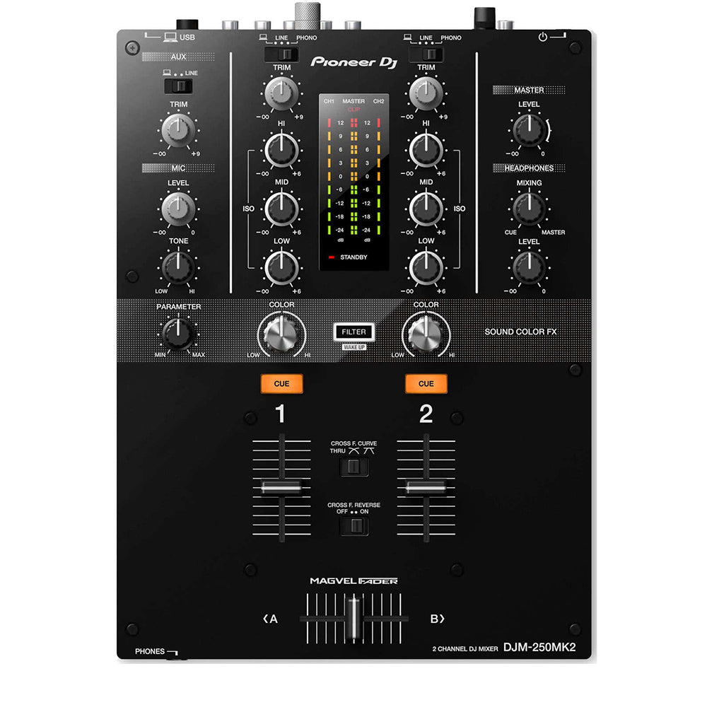 Pioneer DJM-250MK2 поєднує в собі простоту прямого 2-канального DJ-мікшера з потужністю аудіоінтерфейсу USB. Класичний ізоляторний еквалайзер Pioneer дозволяє створювати професійні мікси з вашими улюбленими треками, а потужний Sound Color FX виводить вашу продуктивність на новий рівень. Але незалежно від того, наскільки аналоговими можуть бути фоно/лінійні входи Cinch, вбудована звукова карта USB робить Pionner DJM-250MK2 ідеальним для вашої гібридної діджейської системи. У комплект поставки входить ліцензія на rekordbox dj і розширення rekordbox DVS, щоб ви могли використовувати весь потенціал rekordbox, наприклад, грати в цифровому вигляді за допомогою існуючих програвачів. Чіткий, мінімалістичний дизайн і висока якість обробки роблять 2-канальний мікшер вірним супутником у всіх ді-джеїв, як цифрових, так і аналогових.