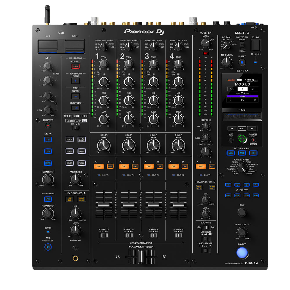Для професійних діджеїв, які прагнуть найвищого рівня керування та якості звуку, Pioneer DJM-A9 об’єднує в собі вражаюче чисте звучання, розширену ергономіку та новітні технології, перетворюючи чотириканальний мікшер на інноваційний інструмент для діджеїнгу в клубах і на фестивалях. Модель базується на успіху DJM-900NXS2, але має вдосконалені 32-бітові перетворювачі для більш прозорого звуку, ширший простір між ручками для комфортнішого мікшування, оновлені Beat FX та функцію Center Lock для Sound Color FX. Завдяки покращеному кросфейдеру, підтримці фантомного живлення для мікрофонів і можливості підключення через USB Type-B/Type-C, цей пульт пропонує бездоганну якість звуку й виняткову гнучкість, а також підходить для стрімів і записів завдяки підтримці Stagehand та інших сучасних технологій.