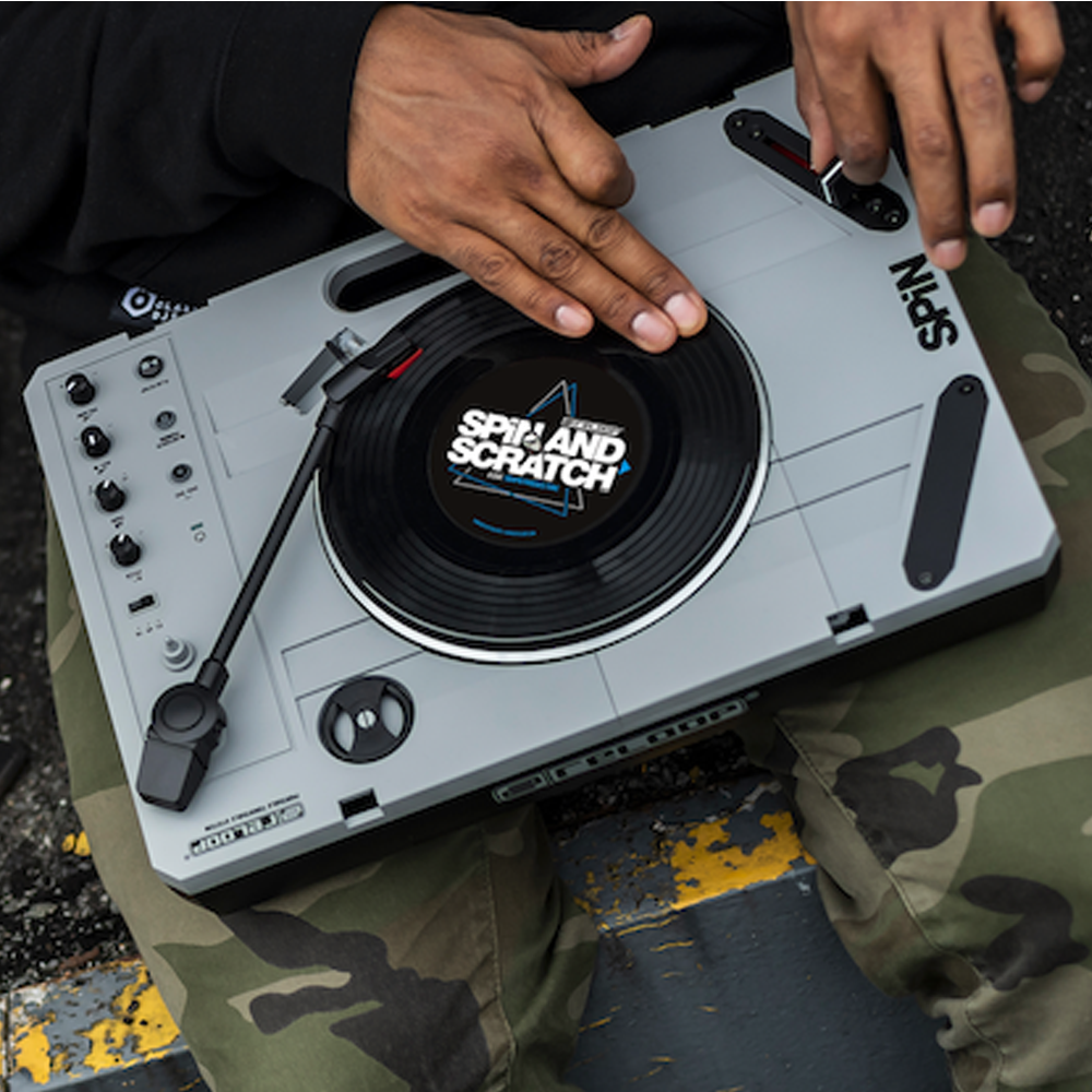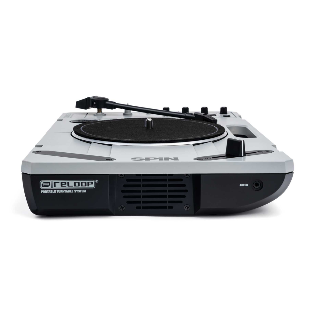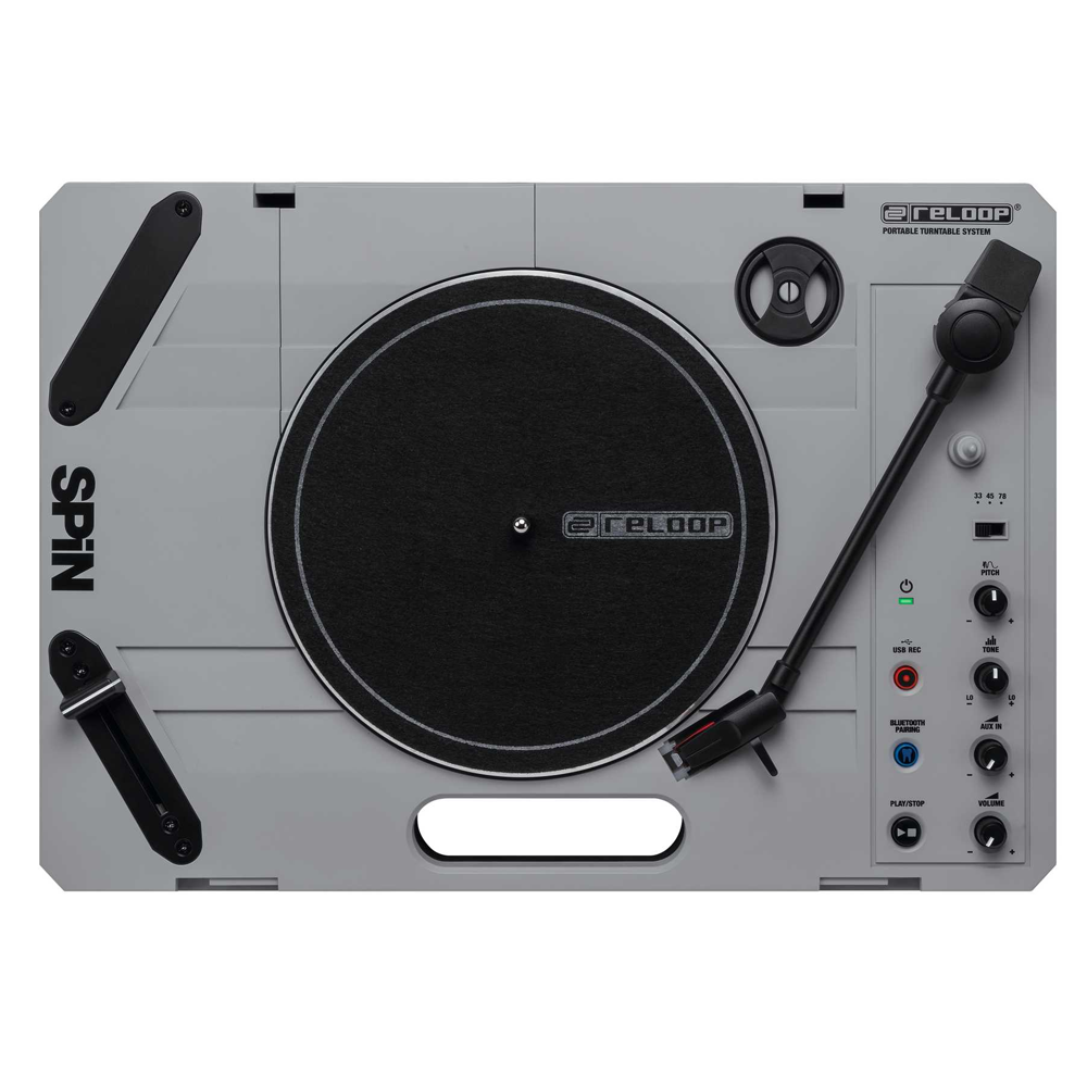Reloop SPIN — це перший портативний вініловий програвач від Reloop, спеціально створений для скретчу. Оснащений вбудованим 45-мм кросфейдером, який можна встановити зліва або справа від диска. Модель має вбудований динамік, тому її можна використовувати без зовнішніх колонок. Також підтримується передавання музики через Bluetooth прямо на програвач.