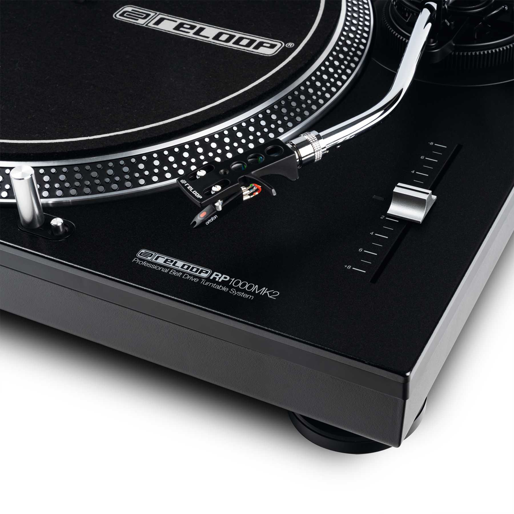 Reloop RP-1000 MK2 — ідеальний програвач для початківців і поціновувачів Hi-Fi. Оснащений ремінним приводом, який стабілізує диск і знижує вібрації. Регулятор висоти тону має діапазон +/-10%. Програвач має статично збалансований S-подібний тонарм з гідравлічним підйомом і механізмом антискейта. Універсальне SME-кріплення дозволяє підключати різні звукознімачі. Верхня панель із металевими кнопками для запуску/зупинки та налаштування швидкості. Міцна конструкція з демпферами і амортизуючими ніжками покращує ізоляцію від вібрацій. У комплекті — високоякісний звукознімач Ortofon OM Black, сліпмат, противага і шнур живлення.