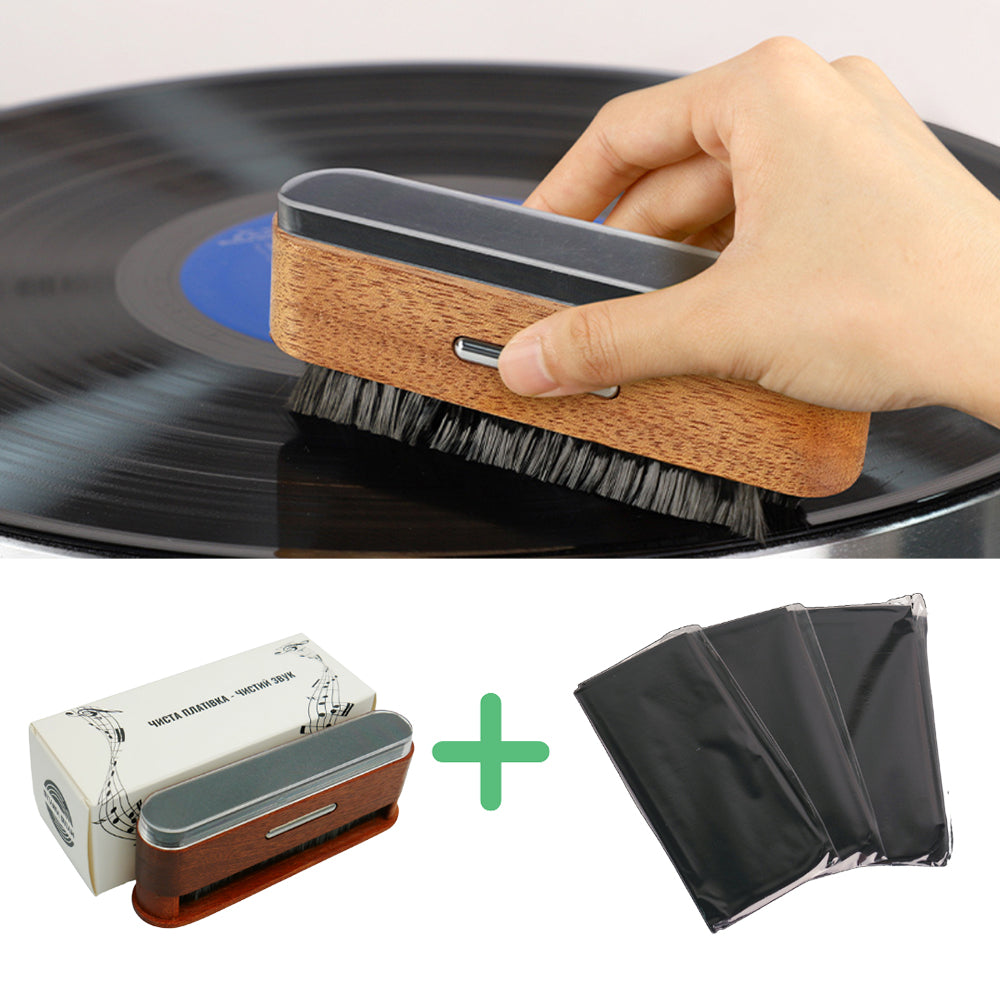 Щітка має ергономічну ручку з вологостійкої деревини та компактний дизайн, що дозволяє легко і зручно очищати платівку. Вбудований комбінований ворс підходить як для щоденного використання вдома, так і для професійних студійних умов, забезпечуючи максимально ефективне очищення.