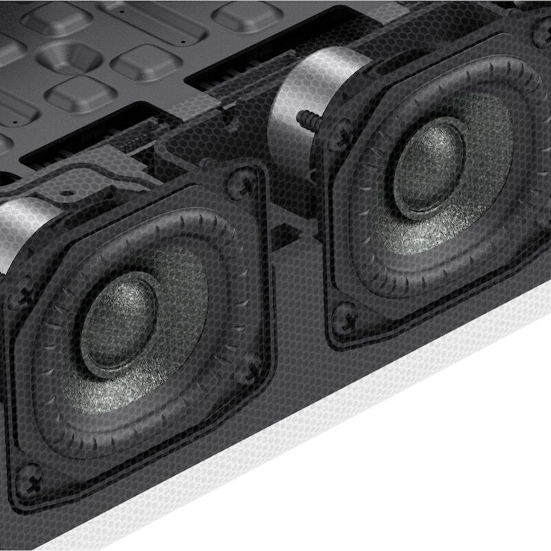 Динаміки: вбудовані сабвуфери, спрямовані вверх динаміки, фронтальні твіттери