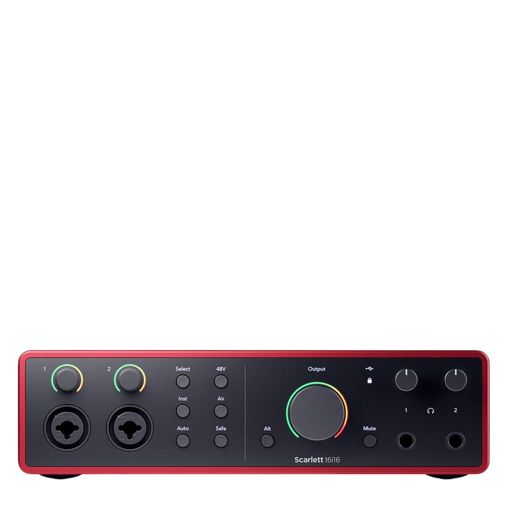 Focusrite Scarlett 16i16 4th Gen — це потужний USB-C аудіоінтерфейс, розроблений для професійних студій звукозапису та продюсерів, які потребують великої кількості входів та виходів. Він оснащений 16 входами та 16 виходами, включаючи два мікрофонні преампи 4-го покоління з 69 дБ підсилення, що забезпечують високу якість запису навіть найдинамічніших джерел звуку. Інтерфейс підтримує роздільну здатність до 24 біт / 192 кГц та оснащений професійними конвертерами, запозиченими з лінійки RedNet, що гарантує надзвичайно чистий та детальний звук.