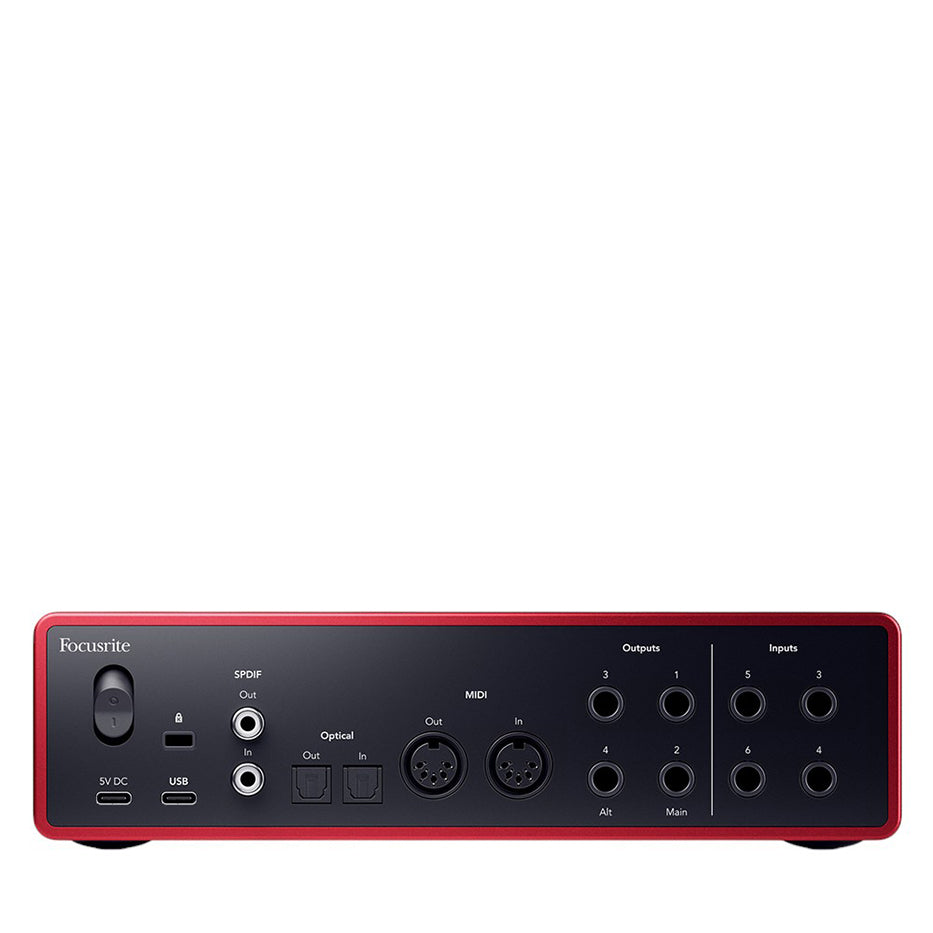 Вхідні канали: 2 x комбіновані XLR-1/4" (мікрофон/лінія/інструмент), 4 x 1/4" TRS (лінійні), 2 x MIDI I/O, 1 x S/PDIF, 1 x ADAT (8 каналів при 44,1/48 кГц, 4 канали при 88,2/96 кГц)