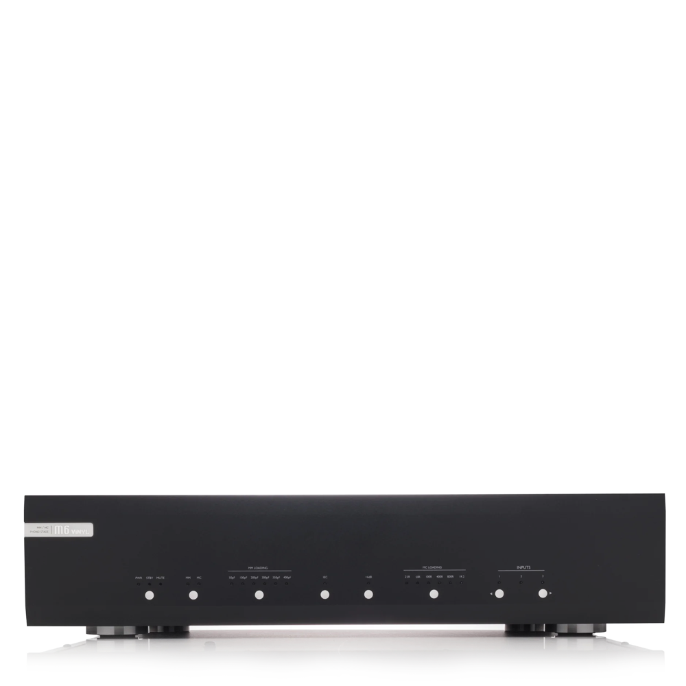 Пристрій оснащений трьома окремими, незалежними входами, що дозволяють налаштовувати параметри кожного з них: тип картриджа (MM або MC), ємність, опір і підсилення. Завдяки цьому M6x VINYL готовий працювати з кількома програвачами або різними тонармами на одному вертушці.