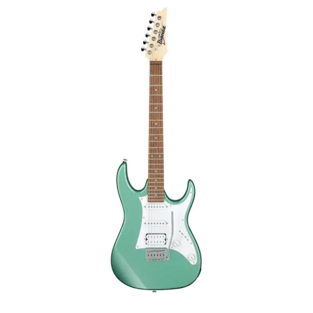 IBANEZ GRX40-MGN — електрогітара з яскравим м’ятним фінішем і гнучкою схемою H-S-S, яка дозволяє легко варіювати характер звучання від чистого фанкового до щільного рокового. П’ятипозиційний перемикач допомагає знайти потрібний баланс для студії або сцени.