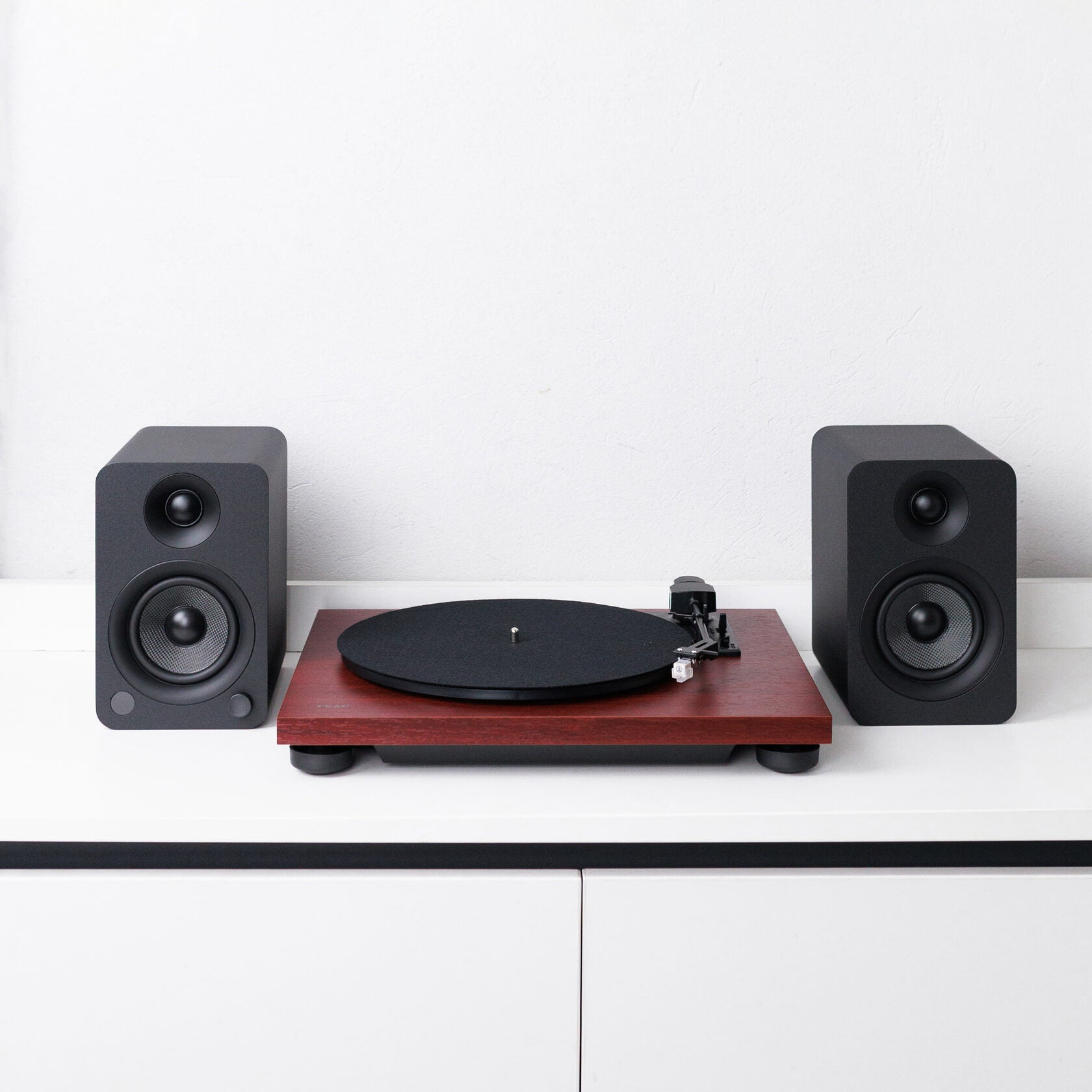 Програвач вінілу Pro-Ject 180BT у поєднанні з активною акустикою Kanto YU - Cherry утворює готову систему для відтворення вінілових платівок.