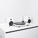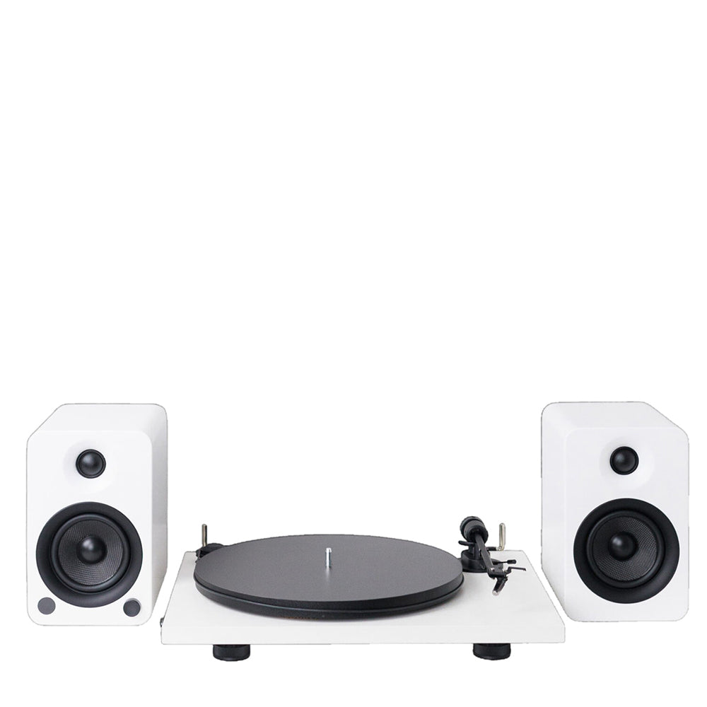 Програвач вінілу Pro-Ject Primary E Phono у поєднанні з активною акустикою Kanto YU4 створює повноцінний комплект для прослуховування вінілових платівок без додаткового обладнання. Вбудований фонокоректор у Primary E Phono дозволяє напряму підключати його до колонок, а картридж Ortofon OM5e забезпечує чисте й збалансоване звучання. Активна акустика Kanto YU4 оснащена потужним підсилювачем, якісними драйверами та широким вибором підключень — від RCA і оптичного входу до Bluetooth. Такий комплект пропонує легке налаштування, зручність у використанні та чудову якість звуку для будь-якого домашнього простору.