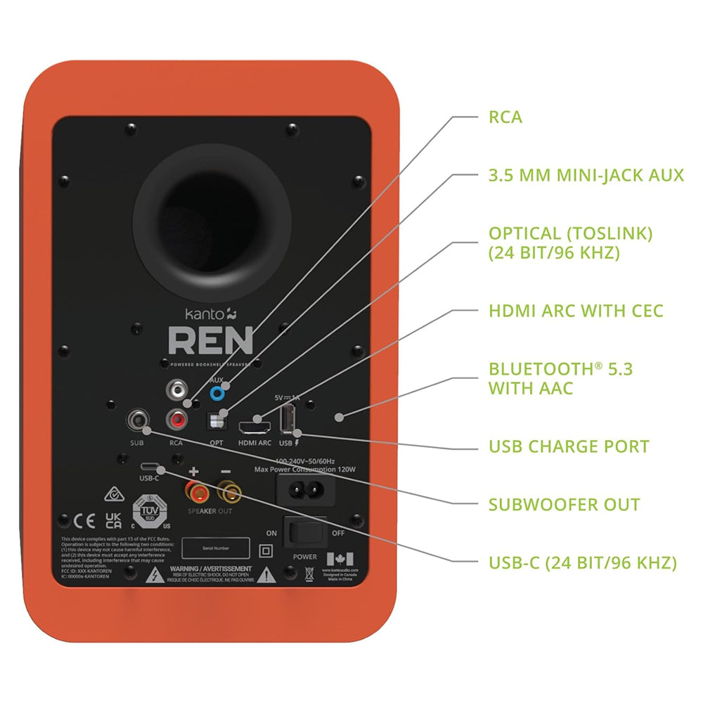 Kanto REN поєднує зручність використання саундбара та точність стереосистеми, керованої DSP, REN, забезпечуючи високоякісне звучання з будь-яким сучасним телевізором через HDMI ARC. Це дає вам можливість створити кінозал вдома в одному компактному пакеті. REN вирішує проблему тихих діалогів і надмірно гучних звукових ефектів завдяки двом режимам звуку, що підсилюють голоси та знижують низькі частоти для зручного перегляду вночі. Коли ви захочете підключити сабвуфер, REN автоматично фільтрує суб-бас зі своїх 5,25-дюймових алюмінієвих динаміків, даючи їм можливість фокусуватися на середніх частотах з мінімальними спотвореннями. REN пропонує універсальність за межами вітальні: Bluetooth 5.3 для підключення до смарт-пристроїв, оптичний вхід для потокових сервісів Wi-Fi, USB-C для використання на комп'ютері та аналогові входи для всього іншого.