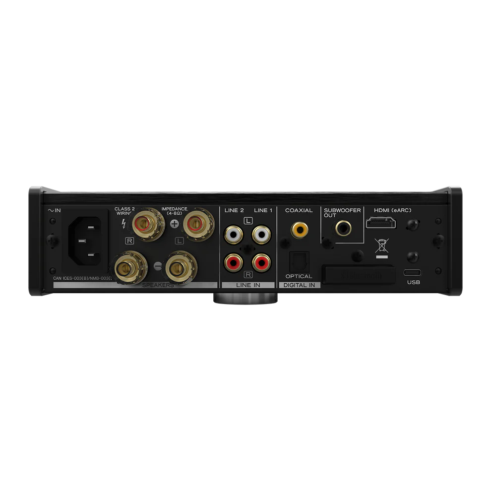 Пристрій оснащено інтерфейсом HDMI ARC/eARC для синхронізації з телевізорами, а також Bluetooth-ресивером із підтримкою кодеків LDAC та aptX HD. Секція підсилювача для навушників реалізована за схемою з роздільним заземленням (4-полюсне підключення), що мінімізує перехресні завади та покращує розділення каналів. Компактний суцільнометалевий корпус формату A4 забезпечує ефективне тепловідведення та захист від зовнішніх електромагнітних наводок.
