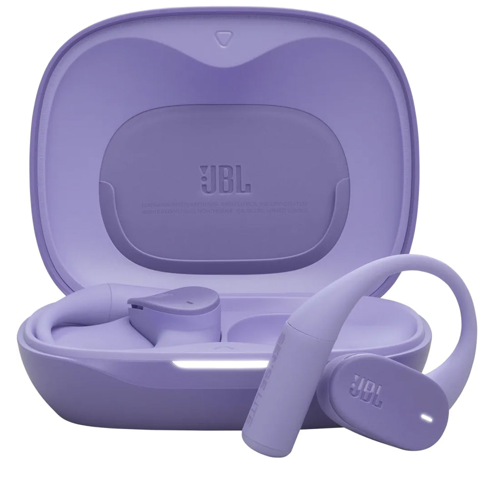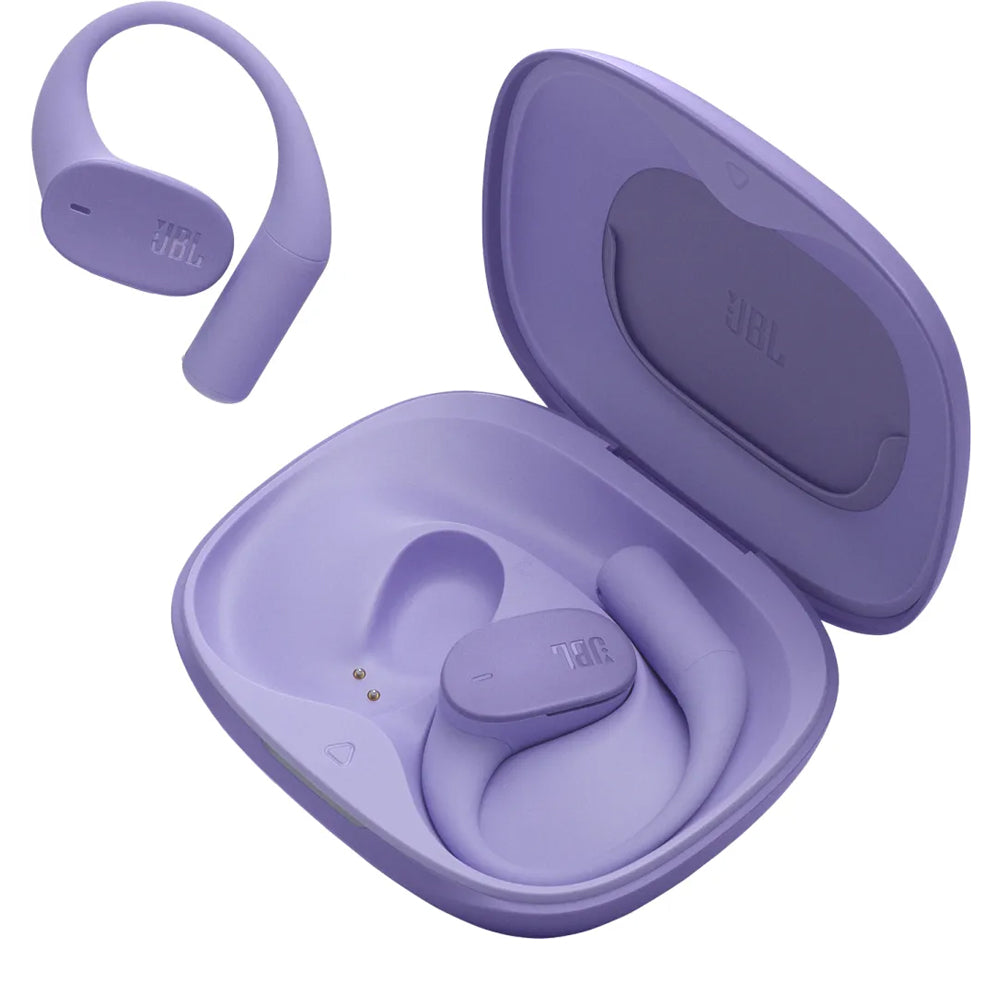 JBL Sense Lite Purpleвідкриті TWS навушники з вушними гачками для повсякденного використання, коли потрібен звук без ізоляції та з контролем того, що відбувається навколо. Сенсорне керування, зарядний кейс, захист від пилу та бризок.