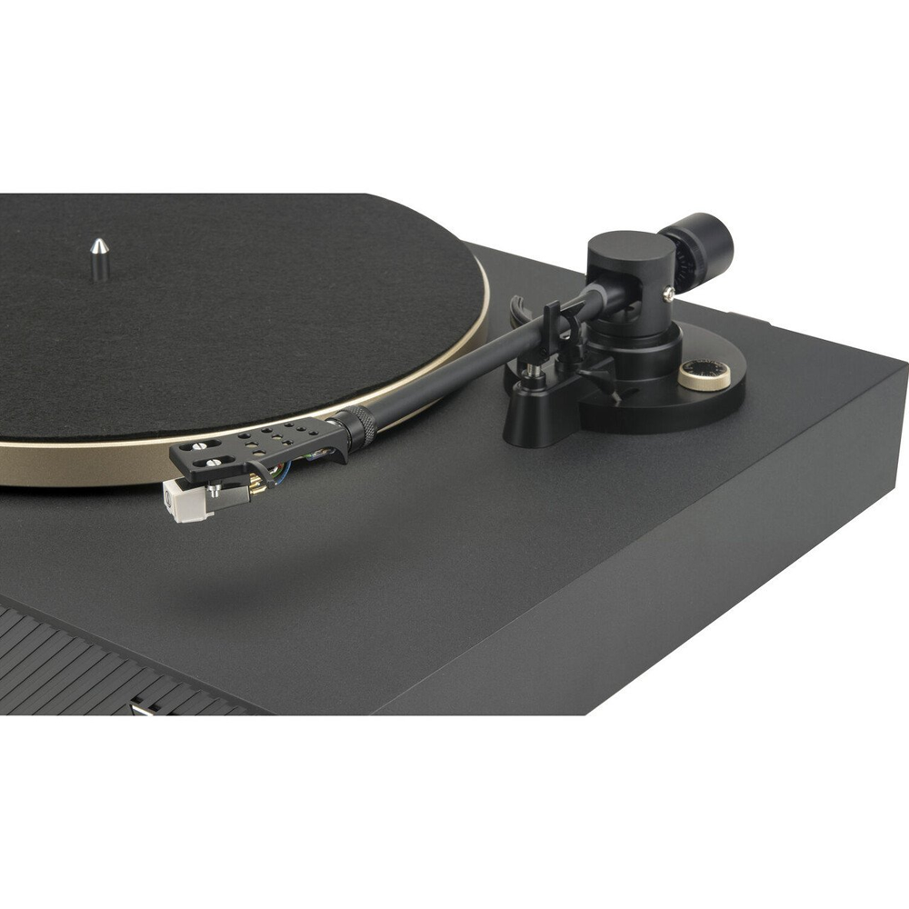 Алюмінієвий диск із ремінним приводом, двигун з оптичним датчиком та точні швидкості 33 1/3 і 45 об/хв забезпечують стабільне відтворення. Легкий і міцний алюмінієвий тонарм із попередньо встановленим картриджем з рухомим магнітом дає чисте звучання без зносу платівок. Знімна голівка дозволяє легко оновлювати звук.