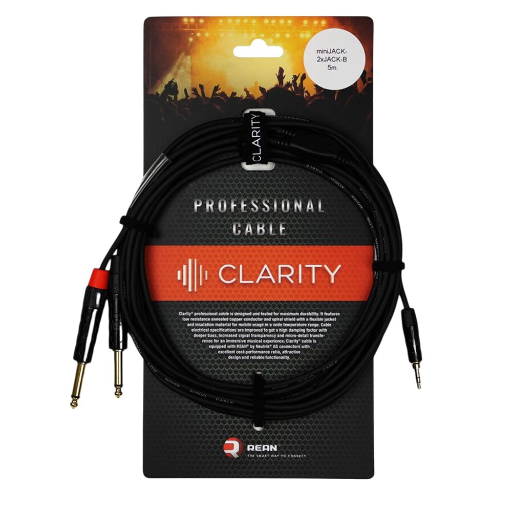 Clarity miniJACK-2xJACK-B — це високоякісний аудіокабель, призначений для передачі аналогового стереосигналу між пристроями з роз’ємами 3,5 мм mini-jack і двома 6,3 мм jack. Завдяки цій конфігурації кабель ідеально підходить для підключення смартфонів, ноутбуків, портативних плеєрів або аудіоінтерфейсів до мікшерів, підсилювачів чи професійного обладнання. Його конструкція забезпечує стабільну передачу сигналу без спотворень і втрат, що робить його надійним рішенням для студійного, домашнього чи сценічного використання.