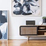 Завдяки потужності 120 Вт, вдвічі більшій за попередню модель, Klipsch The Three II легко заповнює простір. Вона має USB-вхід для підключення до ПК, лінійний вхід mini-jack 3,5 мм, комбінований вхід для MM-Phono та Bluetooth для бездротового з'єднання.