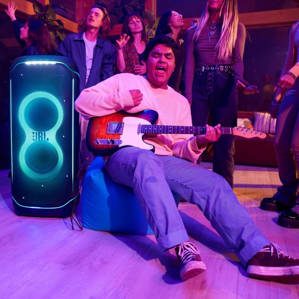 Можна підключити мікрофон, гітару, кілька колонок — для потужного стерео або великої вечірки. А завдяки інтерактивній панелі JBL PartyPad™ із DJ-ефектами та функції автонастройки під простір, ваша вечірка буде звучати і виглядати на максимум.