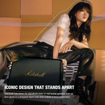 Marshall Woburn III — це поєднання культового рок-дизайну та сучасного звучання. Динамік дарує потужний, глибокий звук, який оцінять і меломани, і поціновувачі стилю. Він миттєво впізнається завдяки фірмовому логотипу, вініловому покриттю та мідним ручкам, що відсилають до рок-н-рольної спадщини бренду.