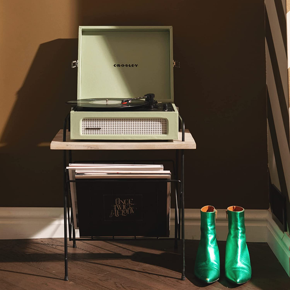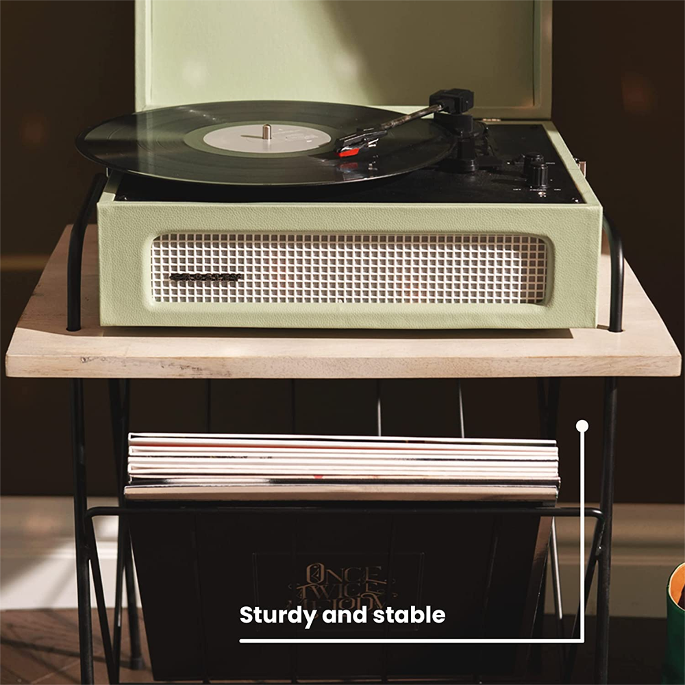 Коли ви лише починаєте колекціонувати вінілові платівки, вам не обов’язково одразу мати велику шафу на сотні платівок. Ідеальним стартом стане компактна та стильна меблева одиниця — столик Wiltshire. Його витончений чорний металевий каркас додає легкості та сучасного вигляду, а мінімалістичний дизайн легко впишеться в будь-який інтер’єр.Передня полиця вміщує близько 10 платівок — саме стільки, скільки потрібно на початку. Верхня частина виготовлена з натурального дерева манго, яке забезпечує надійну основу для вашого програвача. Wiltshire — це практичне та стильне рішення для тих, хто лише відкриває для себе світ вінілу.