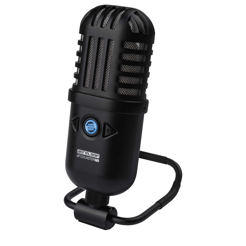 sPodcaster Go - USB-мікрофон від компанії Reloop, призначений для мовлення, подкастингу і запису. Має вбудований аудіоінтерфейс, підсилювач для навушників та підтримує роботу з режимами частоти дискретизації до 16 біт 48 кГц. Оснащується конденсаторним капсулем з кардіоїдною діаграмою спрямованості.