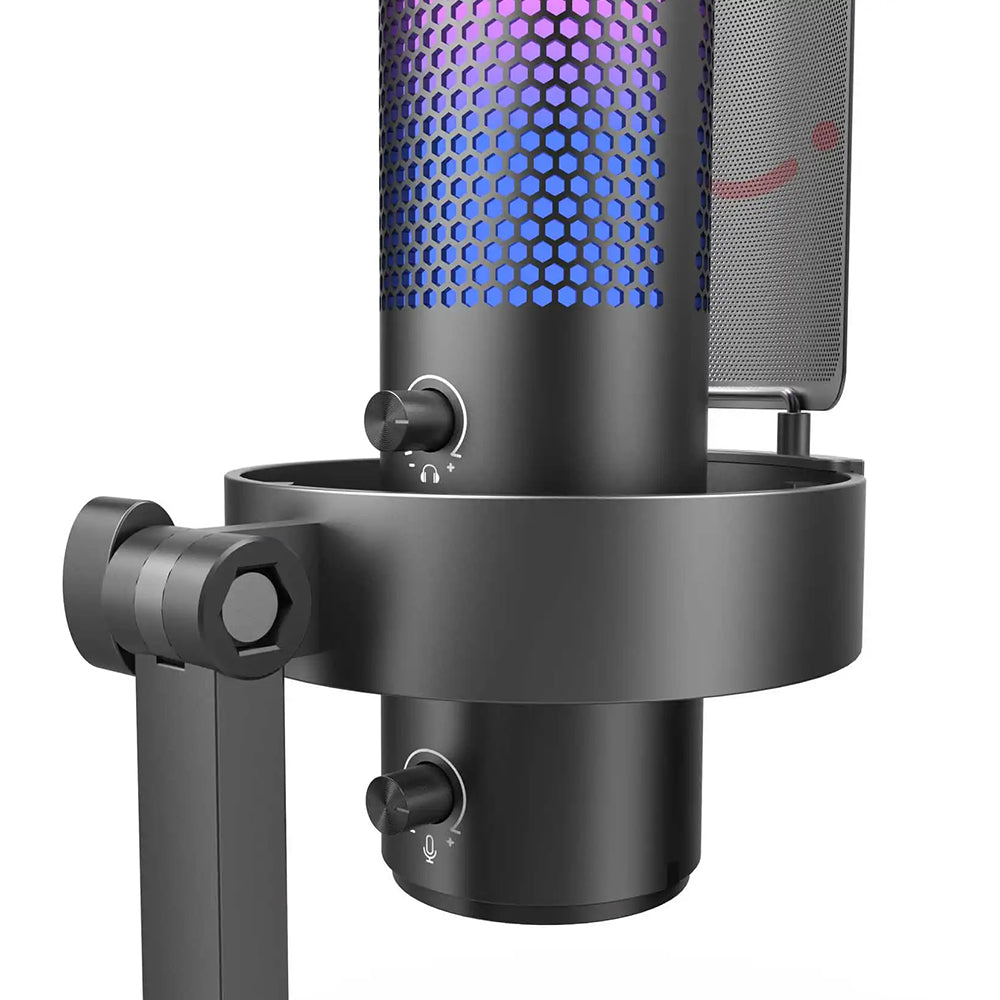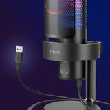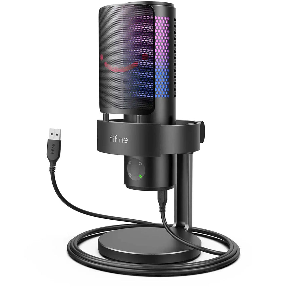 FIFINE A9 — ідеальний мікрофон для стрімінгу, геймінгу та ASMR з RGB підсвічуванням і технологією Plug&Play. Завдяки вибору діаграми спрямованості, ви можете налаштувати звук для будь-яких умов — від прямих трансляцій до запису закадрового звуку. Суцільнометалевий корпус гарантує надійність, а чутлива мембрана забезпечує високу точність та чистоту звуку. Яскраве RGB підсвічування додає атмосфери під час стріму або подкасту, дозволяючи вибрати статичний чи динамічний режим під будь-який настрій.